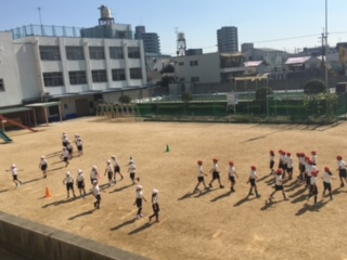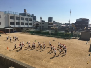 今日は久しぶりの晴天。体育で思いっきり体を動かしています。