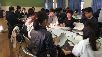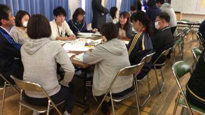 3年生の国語の公開授業がどうだったか、他校の先生方も一緒に討議しました。