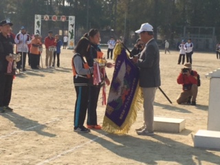 6年生の代表児童が、優勝旗、優勝杯を返還しました。さあ、今年も二連覇めざしてがんばれ!!