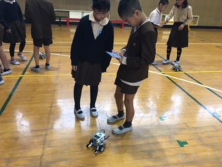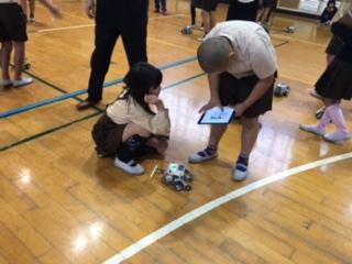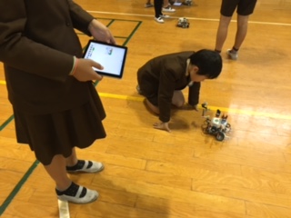 ロボットが完成したら、アイパッドを使って動かしてみました。方向、パワーなど、いろいろ試しています。