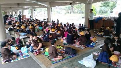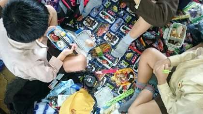 がんばってグループ活動のオリエンテーリングを終えた2年生。お楽しみのランチタイムです!今回もお弁当のご準備ありがとうございます。子どもたちは、おいしそうにおにぎりやおかずをほおばっていました。