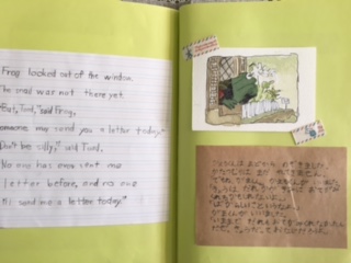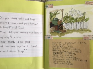 「ねぇ、校長先生見て!」と朝玄関で2年生のI君が見せてくれたのは、アーノルド・ローベル作の「お手紙」という本です。布製の表紙、中の挿絵も布で作ってあります。なんと夏休みに自由勉強として作った作品でした。