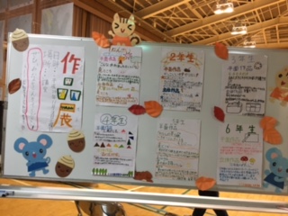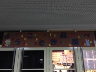 作品展が今日からスタートしました!子どもたちの力作がずらりと並んでいます。入り口の看板は、昨日職場体験で旭陽中学の生徒たちが作ってくれたものです。ホワイトボードには、広報委員会児童作成のポスターが。明日は、17時半まで、18日土曜日は、参観です。12時半まで講堂を開けています。ゆっくりご覧ください。