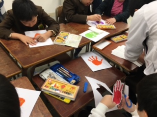 今日は前回取った自分の手形を使って海の生き物を作りました。