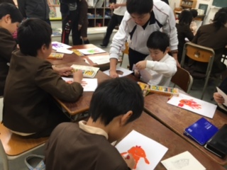 4時間目、ひまわりタイムの研究授業を行いました。海にすむ生き物たちの絵本の読み聞かせからイメージを膨らませ、みんなで「水族館を作ろう」という目標を持って今日まで取り組んできました。