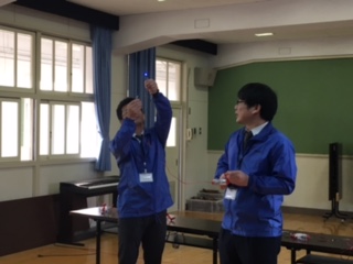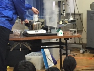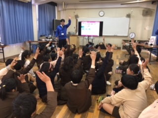 関西電力の方を講師に迎え、授業をしていただきました。初めに説明を聞きました。電気が一番使われているのは朝・昼・夜のうちいつ?などの質問や、火力発電などの質問仕組みを模型を使って教えていただきました。