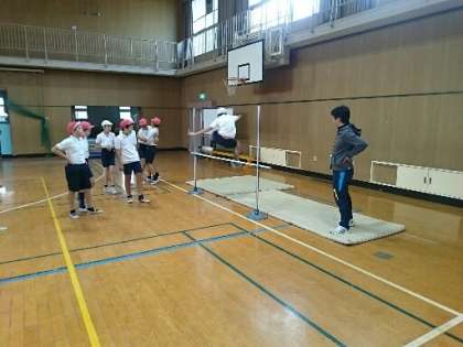 助走で勢いをつけつつ歩幅を合わせ、足を高く振り上げて跳びます。成功するのが楽しくて、皆、どんどん跳んでいきます。新記録を目指してこれからがんばってください。