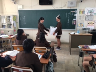 昨日に続き、「場に応じた言葉の使い方」をみんなで考えました。忙しそうにしている人に、お願い事をする場合、重そうな荷物を持っている人はの声のかけ方などです。隣同士ペアで会話したり前へ出てやってみたりしました。友達の言い方にどんどん付け加えてより良い言い方に近づきました。