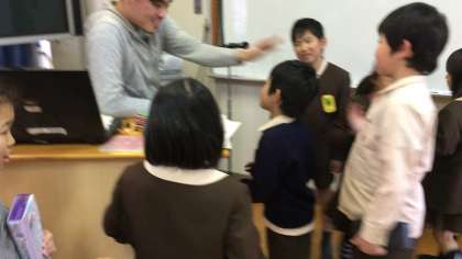 ジェームズ先生とすっかり仲良しになりました。アクションも楽しそうに挑戦しています。