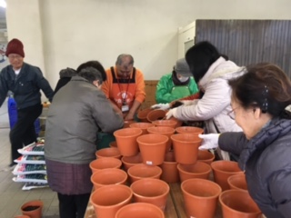 大宮小学校では、毎年入学式で、新入生にチューリップの鉢植えをプレゼントしています。これは地域の花ボランティアさんが、土や鉢を用意して植えてくださっているのです。新1年生の笑顔が楽しみです。いつもありがとうございます。