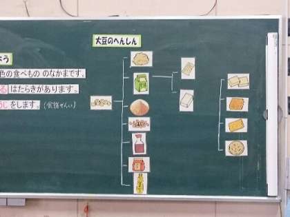 豆の種類、豆の栄養について学び、豆の変身を考える問題が難しかったです。豆からできるたくさんの食品。おからにきな粉にゆばに高野豆腐。まだまだたくさんあります。イラストや写真から見事正解した子は思わずガッツポーズをしていました。