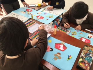 その後、1月のカレンダー作りをしました。「1月って何がある?」「どんな遊びをするかな?」の質問に次々答える子ども達。先生が用意したおもちゃを見ながら、やりたーい!!と。1月の遊びを入れて、一人一人自分のカレンダーを作りました。ステキなカレンダーが出来上がりました!