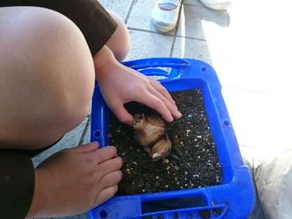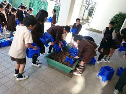 2年生がスイセンの球根を植えてました。きれいな花が咲くように、愛情をもって育ててください。