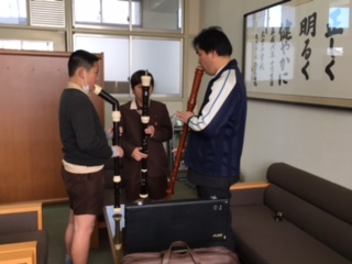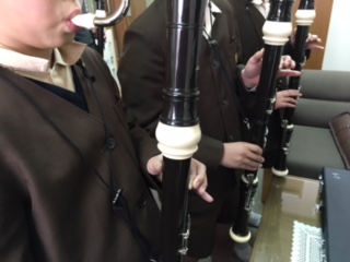 休み時間にカノンでバスリコーダーを希望した6年生が校長室にやって来ました。大きい!ソプラノリコーダーより、はるかに大きいバスリコーダーを手にし、子どもたちは驚いていました。早速、カノンの音の運びを練習しました。