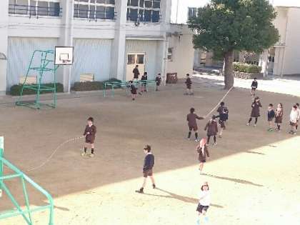 なわとび週間、高学年がそろって跳ぶ最後の日です。残念ながら5年生が学級休業なので、少し寂しいなわとびです。でも、低学年の子たちが長縄を楽しんだり、なわとび台に並んで、順番に使ったりしています。この2週間でなわとびに親しむ子が増えました。冬休みもお家で体力作りとして取り組んでください。