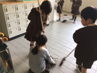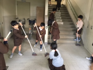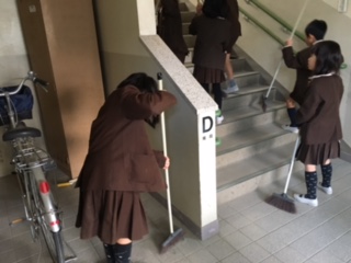 みんなで力を合わせて掃除をしています。職員室に上がる階段もお願いすると、きれいにしてくれました。階段の下には、綿ぼこりがよくたまります。とてもきれいになりました。ありがとう!!