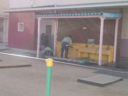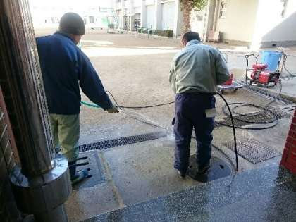 管理作業員さんが、高圧浄水器を使って、西校舎の手洗い場をきれいにしてくださいました。水を使う作業は辛いこの季節。本当にありがとうございます!
