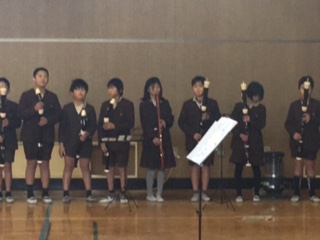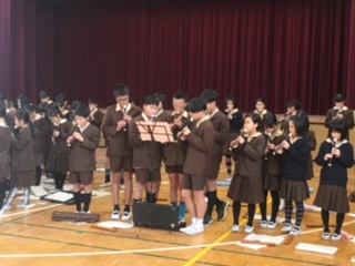 1時間目、講堂で練習を行いました。バスリコーダーも入って「カノン」を演奏しました。ほぼ完成に近いです。自分のパートの演奏をしながら、全体の音もしっかり聴いて、響かせるようにするともっと素敵になりますよ。