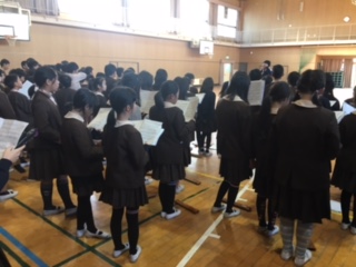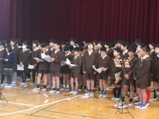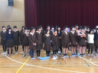 リコーダー奏の次は、合唱「つばさを抱いて」の練習です。とてもきれいな声が出ています。もう少し一人一人がボリュームを上げて、全体で響くようになれば完璧です。明日、最後の練習をします。