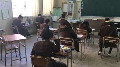 理科の調査問題に挑戦していました。4教科、これで全て終わりです。問題を読みながら、前に行った実験の様子を思い出し、考えながら解いていました。わからなかった問題は、今日のうちに確かめておくと頭に残りますよ。