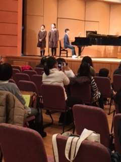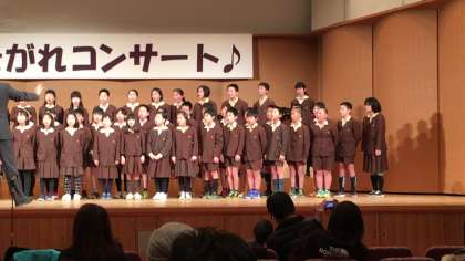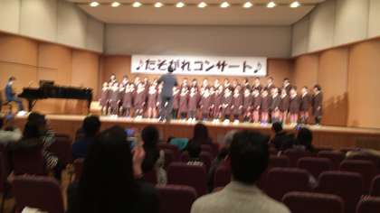 2曲めは「つばさをだいて」の合唱です。静かな出だしから、段々盛り上がりクライマックスに。新しくなったホールで、今日は一段と美しい歌声が響きました。