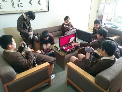 バスリコーダーを担当した5・6年生が楽器を返しに来ました。よほど気に入ったのか、名残惜しそうに、丁寧に丁寧に楽器を磨きあげています。