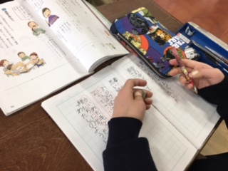 「言葉から想像を広げて詩を書く」学習をしています。4人グループで、連詩を作ります。教科書に載っている詩は、どこが繋がっているか、どんな風に想像しているか読み取り、工夫している点を参考に自分達でも作っていきます。どんな詩が出来上がるか楽しみです!