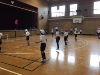 1年から5年まで、今日は専門学校の先生達の出前授業を受けました。学年によって種目は違いましたが、苦手な跳び方のコツを教えていただきました。