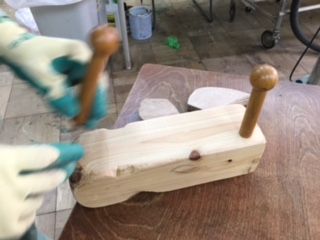 作業室で朝から子ども達のために一生懸命何かを作ってくださっています。ツノ(?!)のようなものもあります。何ができるでしょう?楽しみにしていてくださいね!
