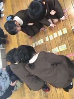 お家の方も一緒に参加してくださったので、子ども達はとても喜んでいました。百人一首にふれるということも大事なことだと考えています。
