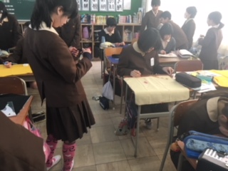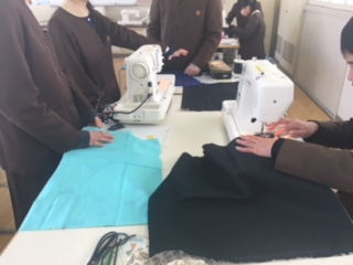 今日からお弁当包みを作っています。巾着型とランチョンマットを型のどちらかを選び、自分でそれぞれの作り方の説明書を読んで進めています。「袋縫い」は、初めてで、「中表」という言葉も覚えました。どんなお弁当包みができるかな。