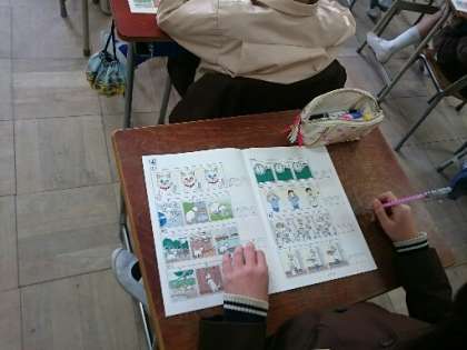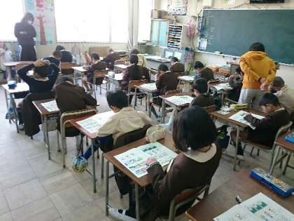 3年生以上の学年で、英検Jr.に取り組んでいます。CDの音声(もちろん英語)を聞き取りながら、内容に合った場面を記号で選びます。45分程流れる英語を集中して聞きながら、問題を解きました。日頃からジェームス先生の英会話に慣れ親しんでいるためか、どの子もしっかりと聞き取れているので驚きました。結果が楽しみです。