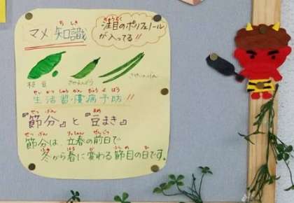 病気や悪い出来事を追い払うために、節分の日には、「鬼は外、福は内」と言って豆まきをしたり、年の数だけいり大豆を食べたりする習慣があります。