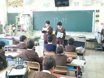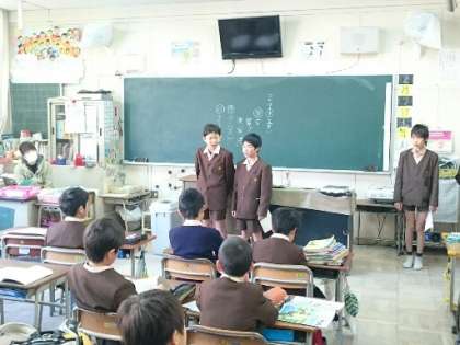 朝の時間に6年生が3年生の教室に行ってクラブ紹介をしました。それぞれのクラブについて分かりやすく説明したり、作った作品を見せたりして、3年生の関心を高めていました。明日はいよいよクラブ見学です。どのクラブに入ろうかな?春が待ち遠しい3年生です。