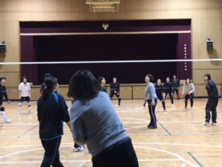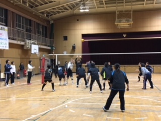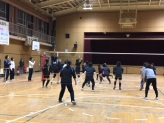 体育館でPTAバレーボールのみなさんが練習試合を行っていました。外は寒くても体育館は熱気であふれています!