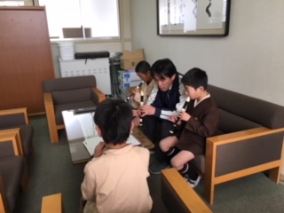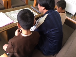 休み時間、校長室で教頭先生にリコーダーの個人レッスンを受けていました。全くできないのではなく、ちょっとじしんがなかっだけ。すぐに上手に吹けました!「できない」とあきらめずに挑戦してみると、案外簡単にできるものですよ!どんどん新しい曲にも挑戦してみてね!