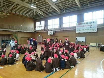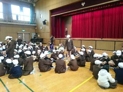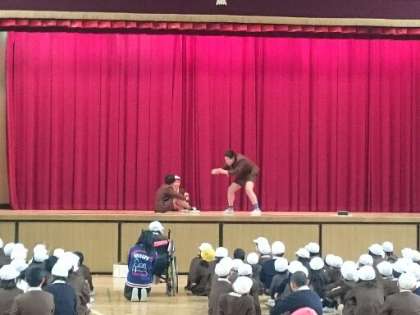 今日の児童集会はジェスチャーゲームをしました。たてわり班に分かれて、6年生のリーダーがあらかじめ出されていたお題の通りジェスチャーを考えて披露します。クレヨンしんちゃんやドラえもん、ブルゾンちえみなど、なかなかの難問ぞろい。苦戦しながらもがんばった6年生でした。