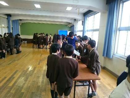 多目的室で5年生が4年生に委員会の紹介をしました。国語の学習で、ていねいにリーフレットを作り、それを使って委員会について紹介しました。来年から委員会活動に参加する4年生は、それぞれの委員会がどんな活動を行っているかよくわかったと思います。伝え合うことで、一人一人の生活の前途が開き、前向きに活動する気持ちが芽生えています。