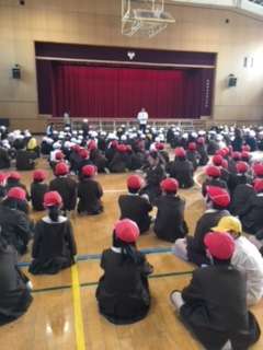 その後、生活指導担当のM先生から、昨夕、中宮4丁目で起きた事案について話があり、一人では行動しないこと、何かあったら子ども110番の家などに駆け込むこと、怖い目にあったら警察や学校に知らせることなどの注意がありました。