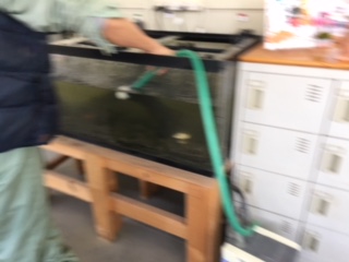 これは、校長室前に置いてある水槽の掃除を管理作業員さんが毎月してくださっているのです。