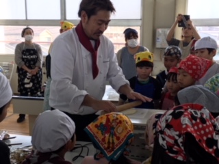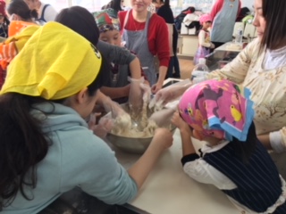 生地をこねるのはなかなか力が入ります。そこは、お父さんの出番?!