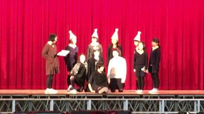 2日は、6年生最後の参観でした。英語劇「白雪姫」と「桃太郎」を朗読劇と劇で演じました。ジェームス先生にも教えていただき、発音なども練習した成果がよく現れていてびっくりしました!可愛らしい動作に、思わずにっこりする場面もありました。