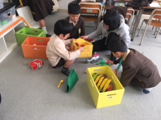 そして最後は、みんなでピカピカタイム。ゴミを拾ったり、整理箱や本棚の片付けをしました。きれいになってとてもスッキリしました!来週は、今年度最後のひまわりタイムです。