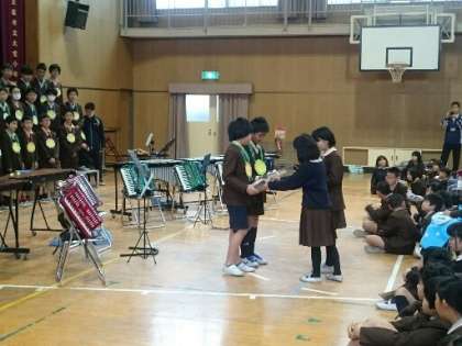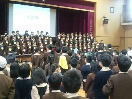 贈る言葉に続いて在校生が「手紙」を6年生にむけて歌いました。この曲はもともと中学生の合唱コンクールの課題曲だっただけに、少し大人っぽい歌詞の内容でしたが、みんな心を込めて歌いました。6年生にむけての歌声を聴き、心が揺さぶられました。