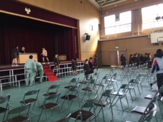 5.6時間目、5年生が講堂にシートを敷いたり椅子を並べたりなど卒業式の準備をしました。卒業式まで後一週間となりました。