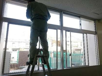 管理作業員さんが校舎を美しくしてくださっています。ガラスや壁、窓のさんなど、どんどんピカピカになっていきます。気持ちよく卒業を迎えられそうですね。