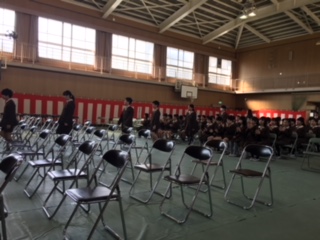卒業式まで後3日となりました。卒業式の本番通り9時30分より予行を行いました。