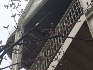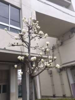 今日は肌寒い1日でした。冬に戻ったような感じでしたが、学校の講堂前のハクモクレンが、咲き始めました。桜のつぼみもふくらみ、1分咲きです。春はもうすぐです。