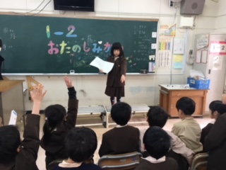 「1年生さようなら」の意味も込めて、お楽しみ会をしていました。会の進め方や出し物も上手に工夫してできるようになりました!