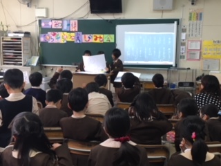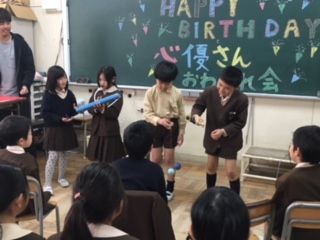 2年生もお別れ会、お楽しみ会を開いていました。曲に合わせてけん玉を披露したり、紙芝居クイズなど工夫していて、やって楽しい・見て楽しい会でした!